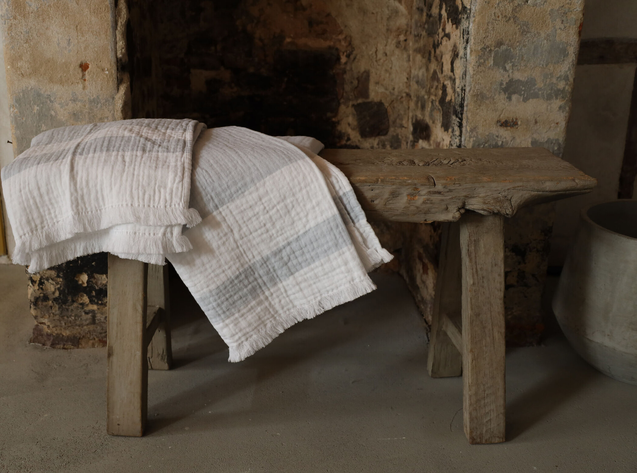 Découvrez la polyvalence et le style du plaid Portofino, fabriqué en doux coton hydrophile