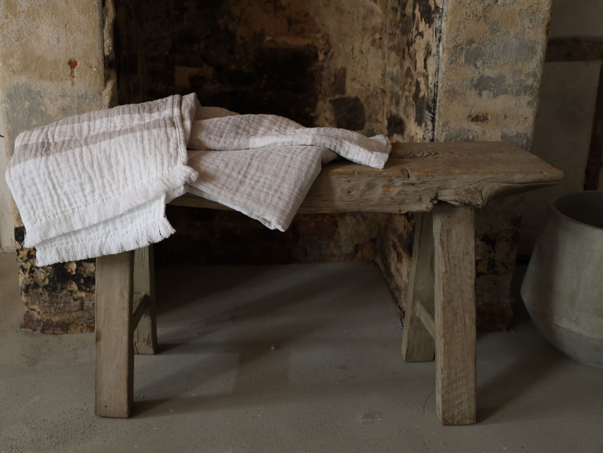 Découvrez la polyvalence et le style du plaid Portofino, fabriqué en doux coton hydrophile avec une élégante rayure en taupe ou bleu. Ce magnifique plaid est parfait pour toute pièce de la maison et peut même être utilisé comme serviette de plage.